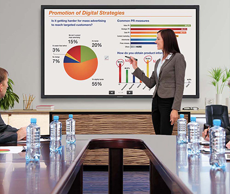 SHARP INTELLIGENT TOUCH BOARD with high picture quality and interactivity functions is also suitable for the business applications. It can simply be installed in meeting rooms to be used for presentations, video conferences, interactive lectures , and seminars . It helps business executives to have effective and distraction free presentations by facilitating interaction between the presenter and the audience. The product can play a variety of media content including images, videos, and power point presentations. The presenters and participants can share files and other materials with audience devices.